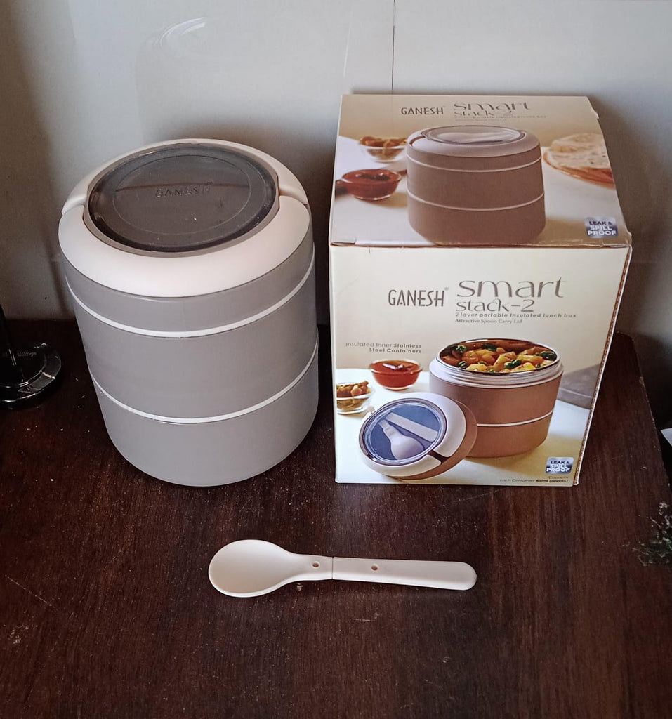 Ganesh Smart Stack 2 Layer Portable Lunch Box Stainless Steel Airtight Leak-Proof Lunch Box for Office, School, Picnic: Color May Vary (2 Layer) Description:- Four Sided Lock and Seal Lid. This Lunch Box comes with...